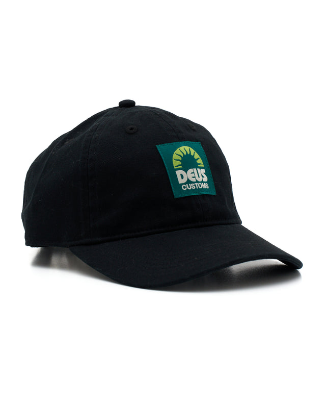 Classic fit 6 panel dad cap with front woven label and strap back closure in cotton twill fabrication with a heavy garment wash.